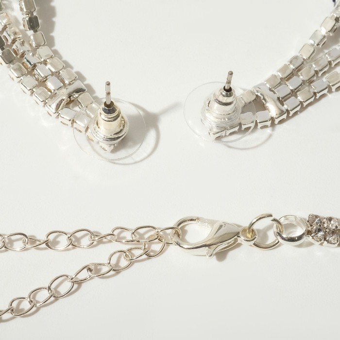 Набор 2 предмета: серьги, колье «Торжество» лепестки в 2 ряда, цвет бело-синий в серебре, 40 см — Характеристики