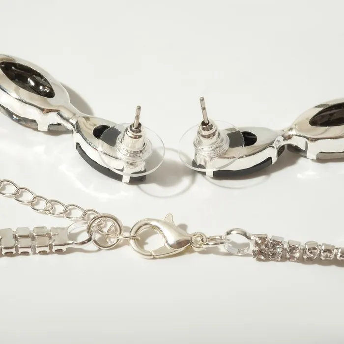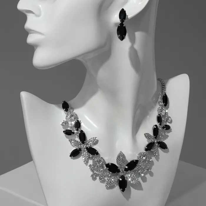 Набор из двух предметов: серьги и колье со стразами — это элегантный аксессуар с уникальным дизайном, который добавит сияния вашему образу. Этот комплект идеально подойдет для любого мероприятия, подчеркивая утонченность и стиль. Серьги и колье можно носить вместе или раздельно, дополняя образы для любого случая.