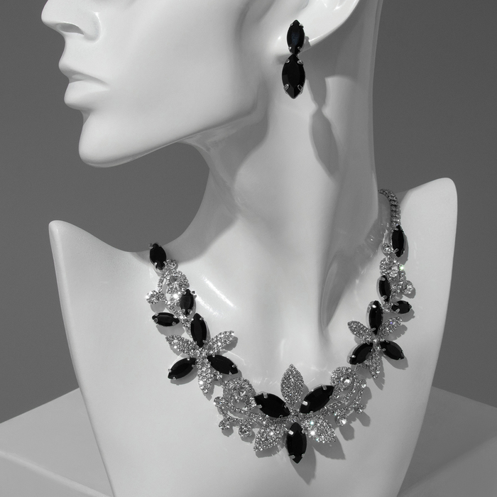 Набор 2 предмета: серьги, колье «Цветение» царское , цвет бело-серый в серебре — Характеристики