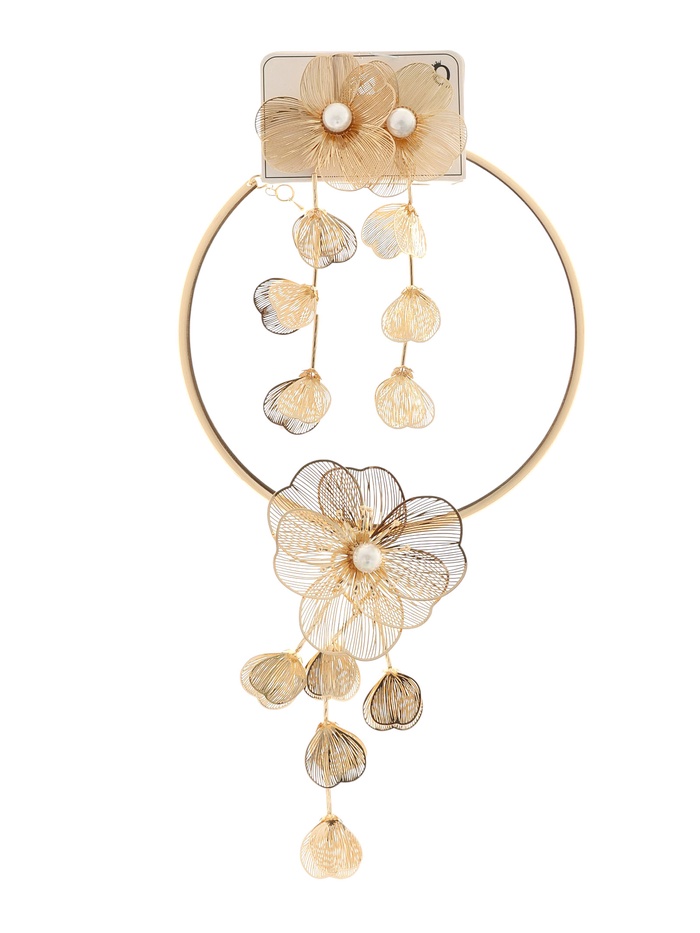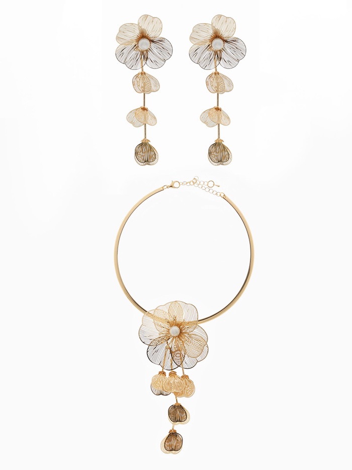 Бижутерный набор из двух предметов: серьги и колье — идеальное дополнение к вашему образу! Этот стильный аксессуар можно носить как вместе, так и по отдельности. Благодаря высококачественным материалам и профессиональному исполнению, наш набор станет изюминкой вашего гардероба. Добавьте его в свою коллекцию украшений и наслаждайтесь восхищёнными взглядами окружающих!