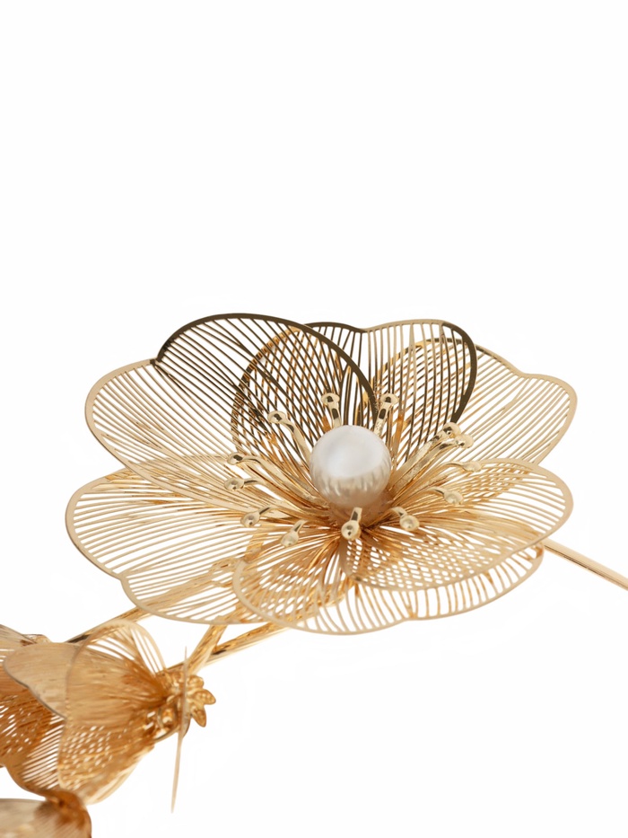 Набор 2 предмета: серьги, колье «Цветок» бусина и стразик, белый в золоте, d=14 см — Характеристики