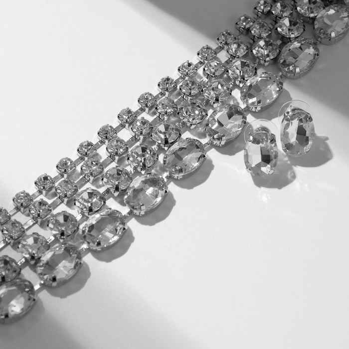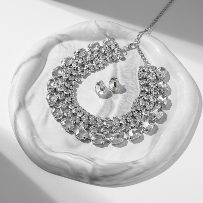 Набор 2 предмета: серьги, колье «Вечерний» 4 ряда, цвет белый в серебре — Характеристики