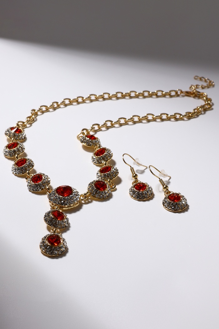 Набор 2 предмета: серьги, колье «Великолепный век», цвет бело-красный в золоте, 42см — Характеристики