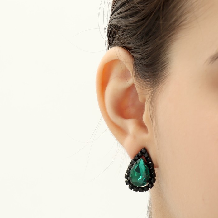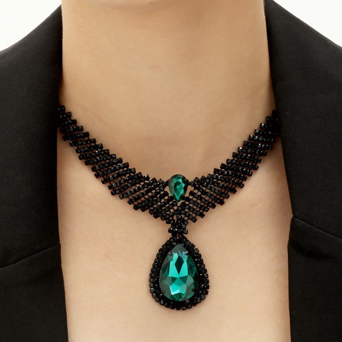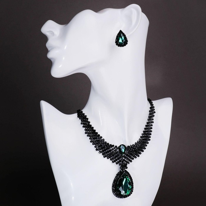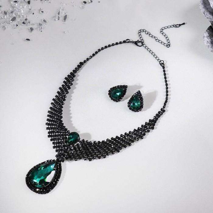 Набор 2 предмета: серьги, колье «Вернисаж» капля, цвет изумрудный в чёрном металле, 30 см — Характеристики