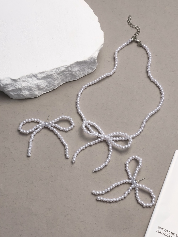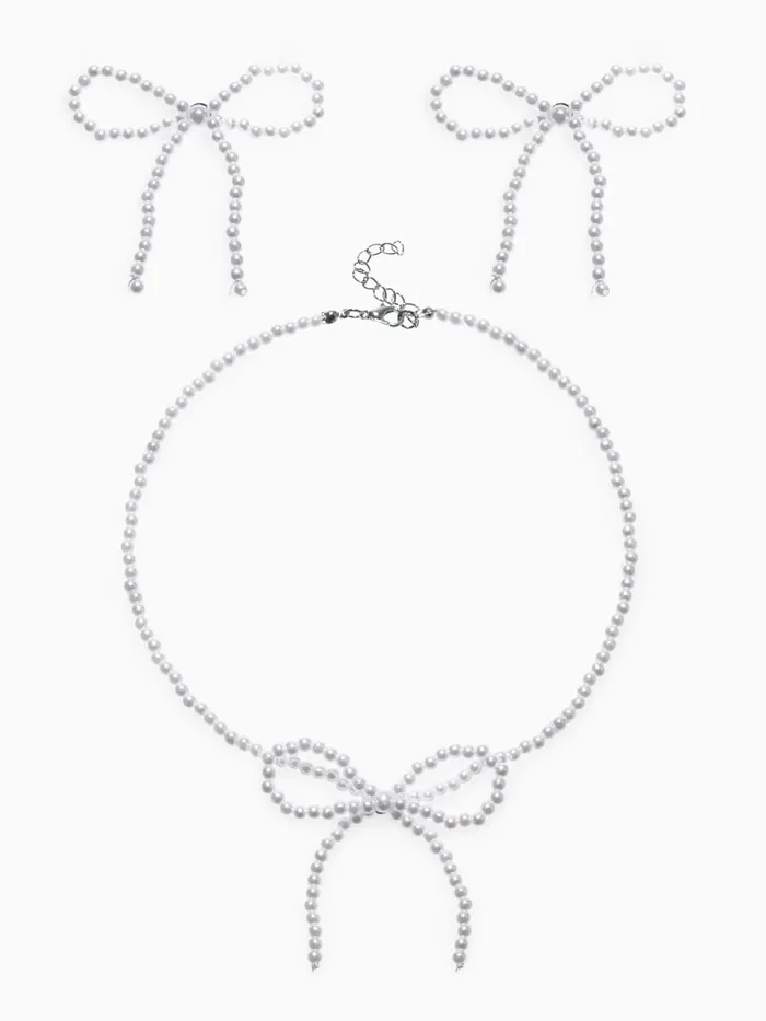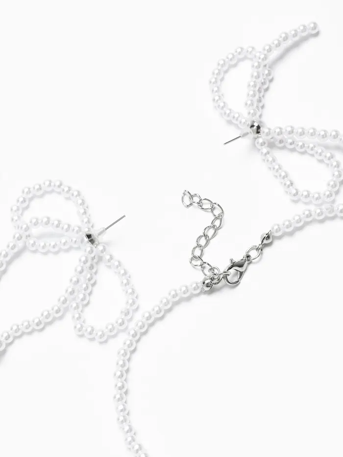 • Набор 2 предмета: серьги, колье «Жемчуг» бантик, белый в серебре, 35 см — Характеристики