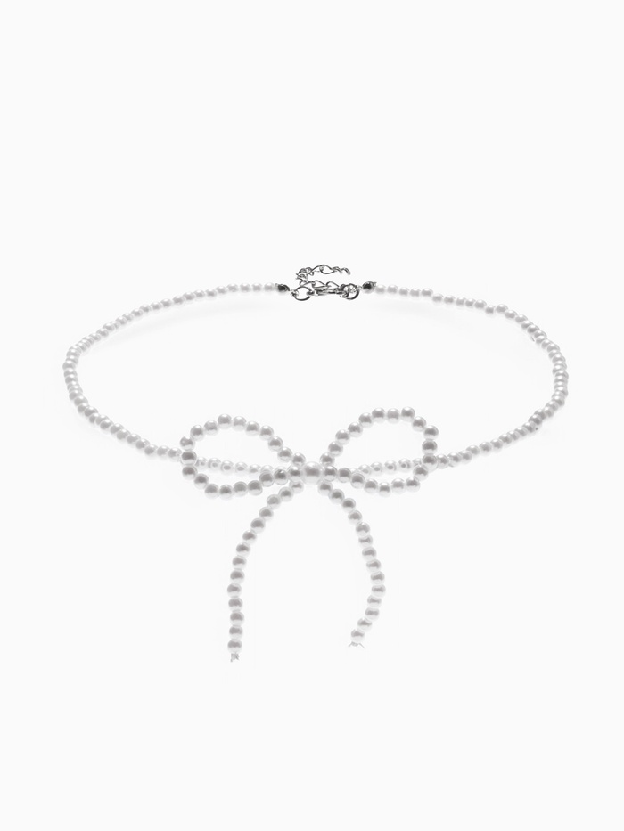 Набор 2 предмета: серьги, колье «Жемчуг» бантик, белый в серебре, 35 см
