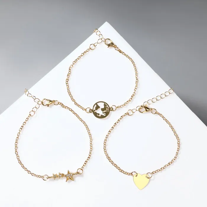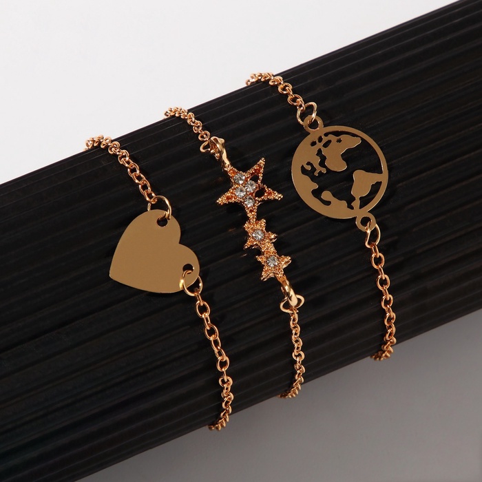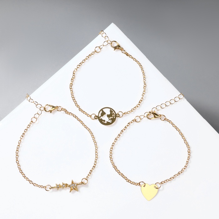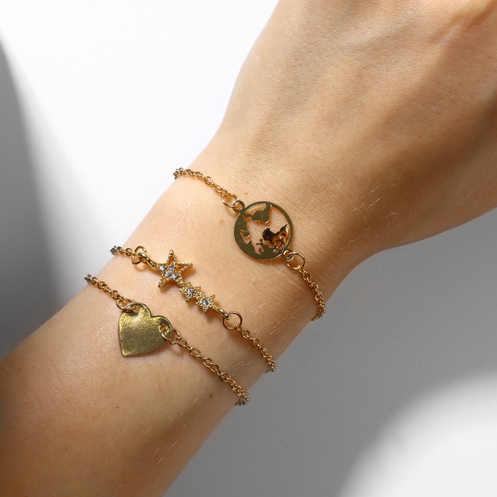 Набор 3 браслета «Стиль» звезда, земля, сердце, белый в золоте, 19 см — Характеристики