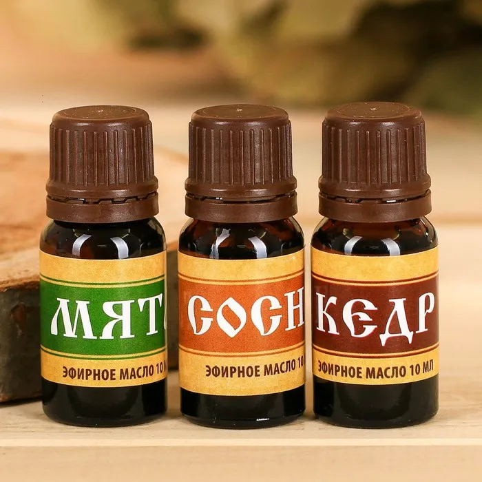 Набор 3 эфирных масла 10 мл "Лучшему банщику!" сосна, мята, кедр — Характеристики