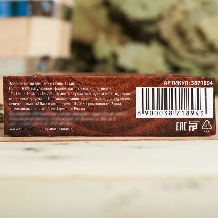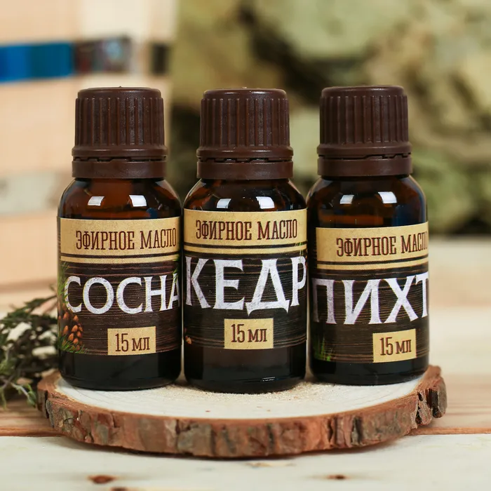 Набор 3 эфирных масла 15 мл "Лучшему банщику" сосна, кедр, пихта — Характеристики