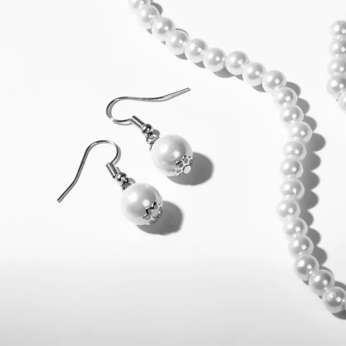 Набор 3 предмета: серьги, колье, браслет «Жемчуг» элегантный, цвет белый в серебре — Характеристики