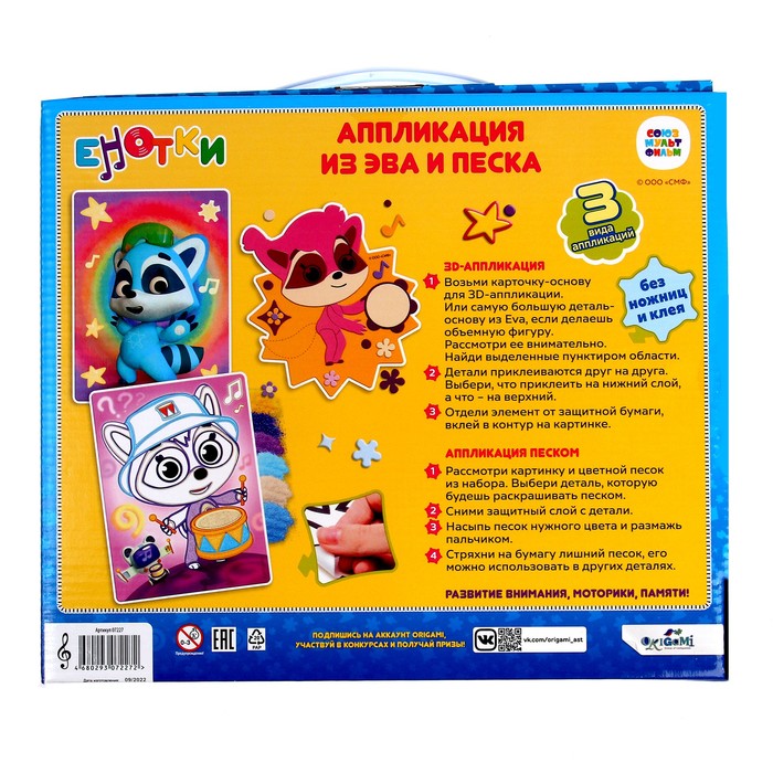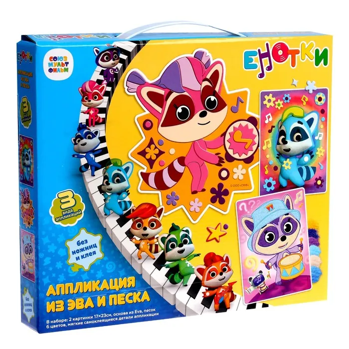 Набор 3 в1 «Енотки» «Звуки музыки» аппликация (песок, EVA) — Характеристики