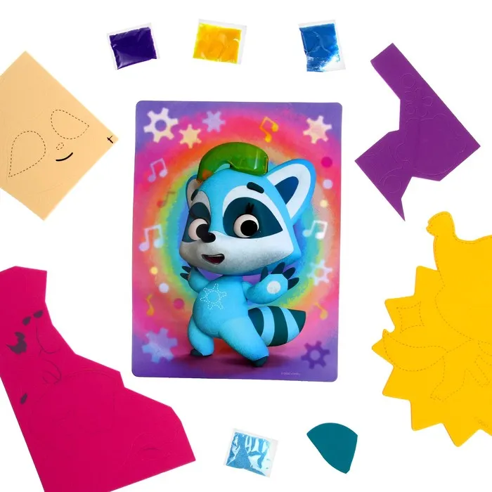 Набор 3 в 1 «Енотки. Звуки музыки» — идеальное развлечение для детей. С помощью этого набора малыши смогут легко создать веселые картинки из песка и мягкой самоклеящейся мозаики EVA без клея и ножниц, что делает процесс безопасным и увлекательным.