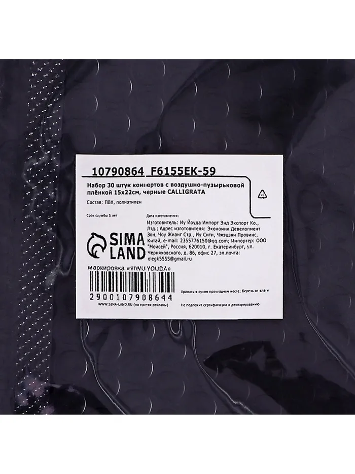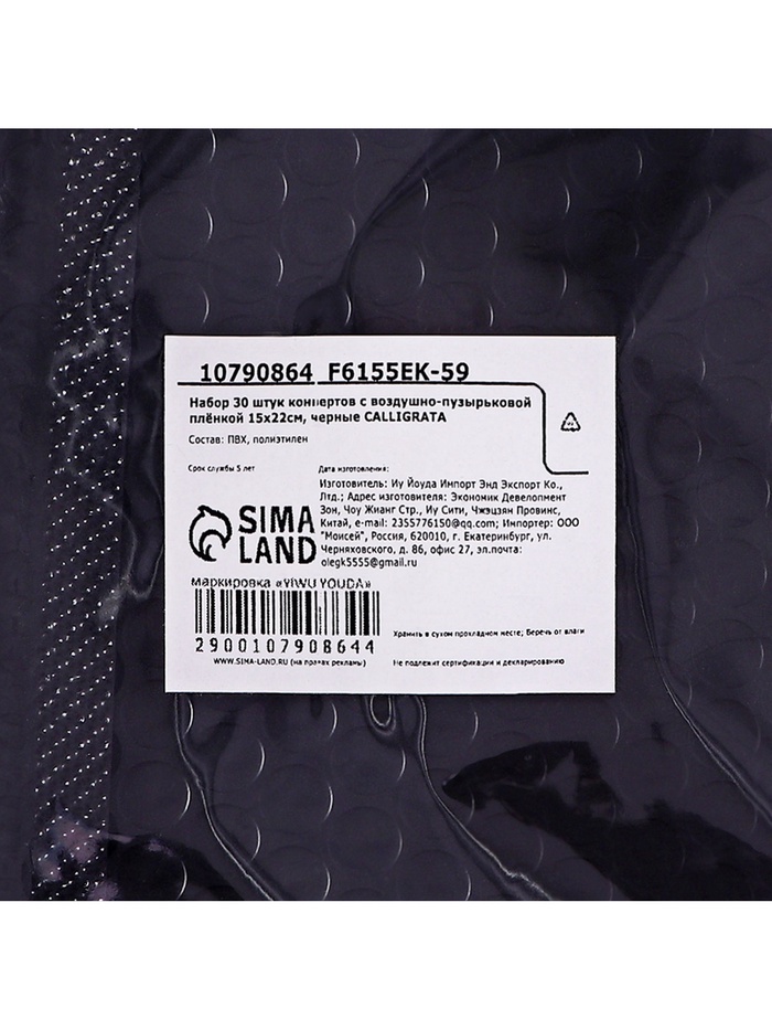 Набор 30 штук конвертов с воздушно-пузырьковой плёнкой 15х22см, черные — Характеристики