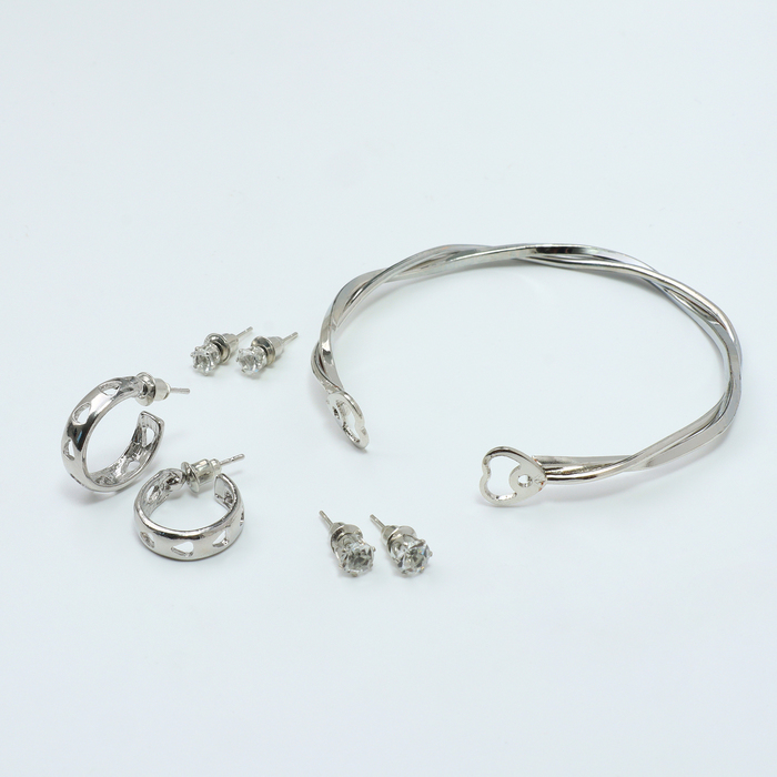 Набор 4 предмета: 3 пары серьги, 1 браслет «Нежность», цвет белый в серебре