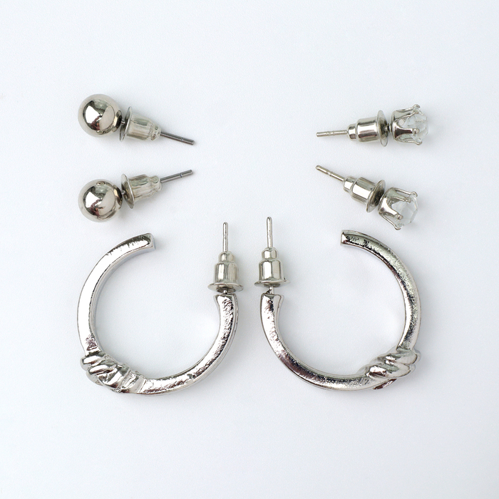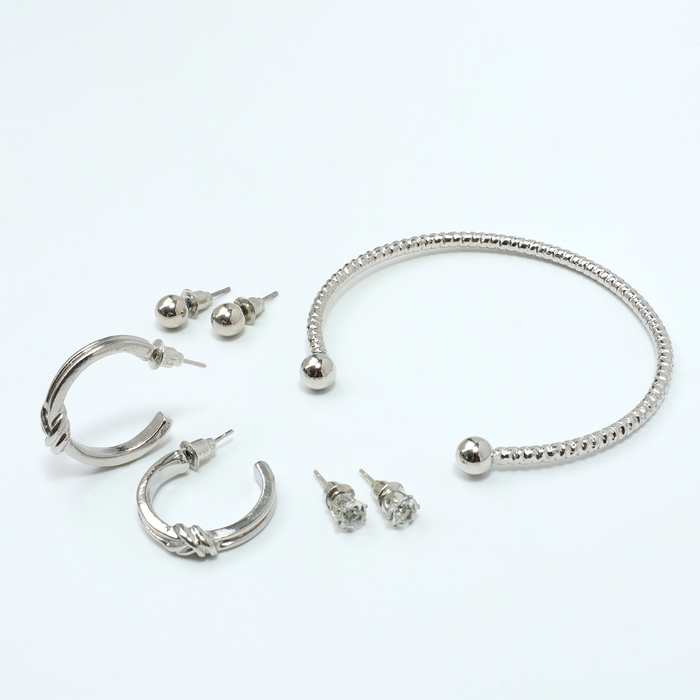 Набор 4 предмета: 3 пары серьги, 1 браслет «Узел», цвет белый в серебре