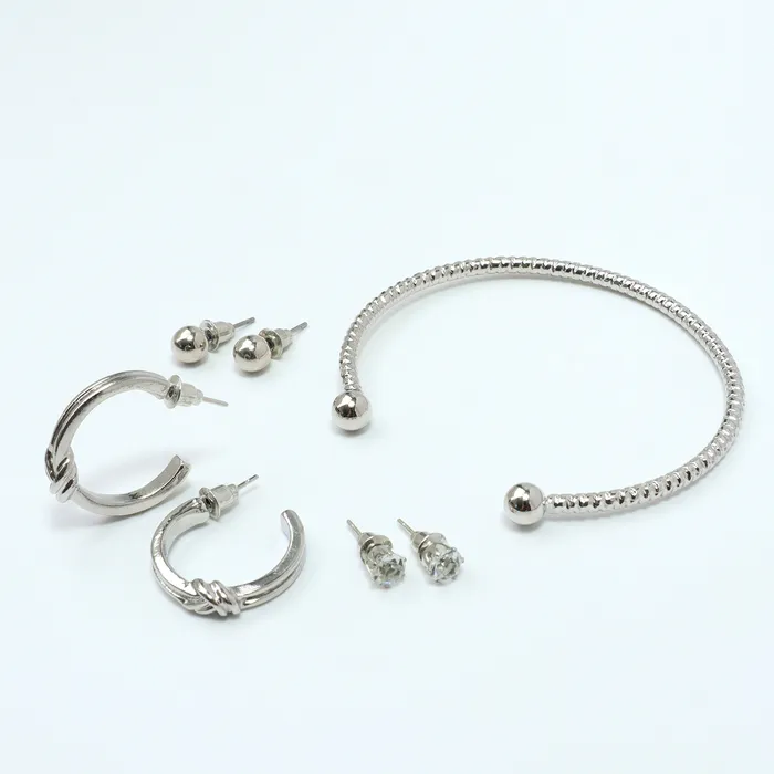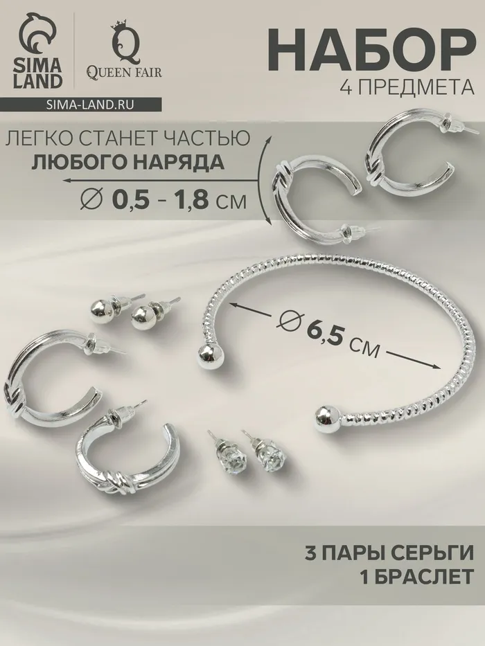 Набор 4 предмета: 3 пары серьги, 1 браслет «Узел», цвет белый в серебре — Характеристики