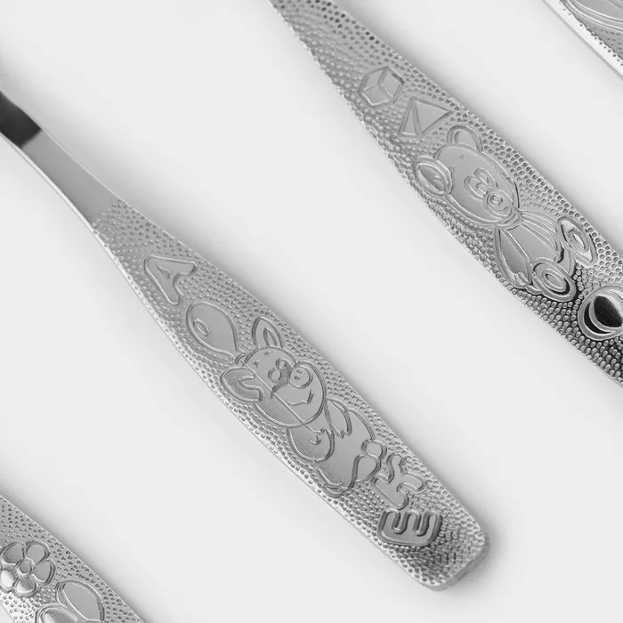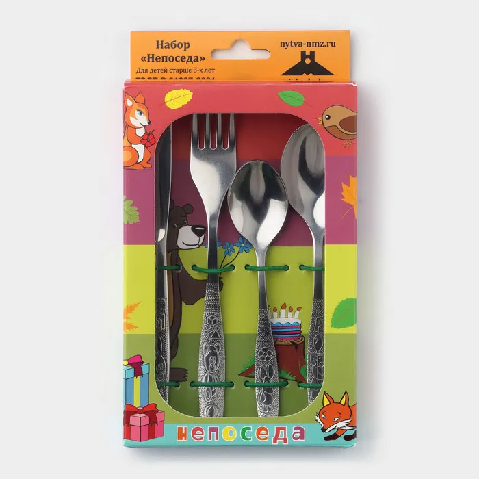 Линейка столовых приборов "Непоседа" создана для самых маленьких. Прелестные изделия из нержавеющей стали толщиной в 2 мм декорированы изображением обаятельных зверят и непременно понравятся вашему крохе.
