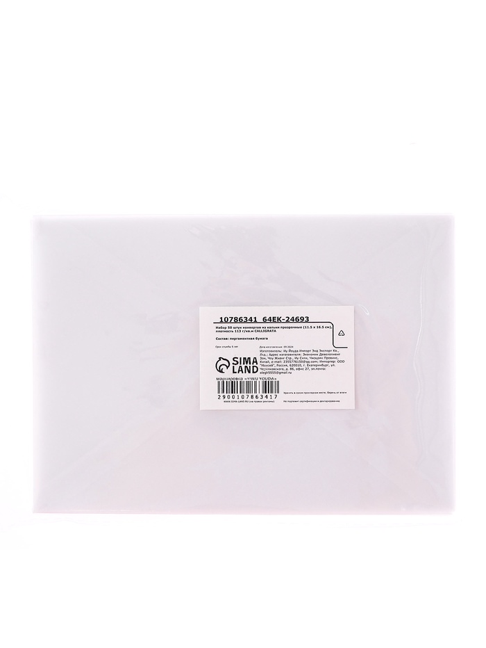 Набор 50 штук конвертов из кальки прозрачные, 11.5×16.5 см, плотность 113 г/м² — Характеристики