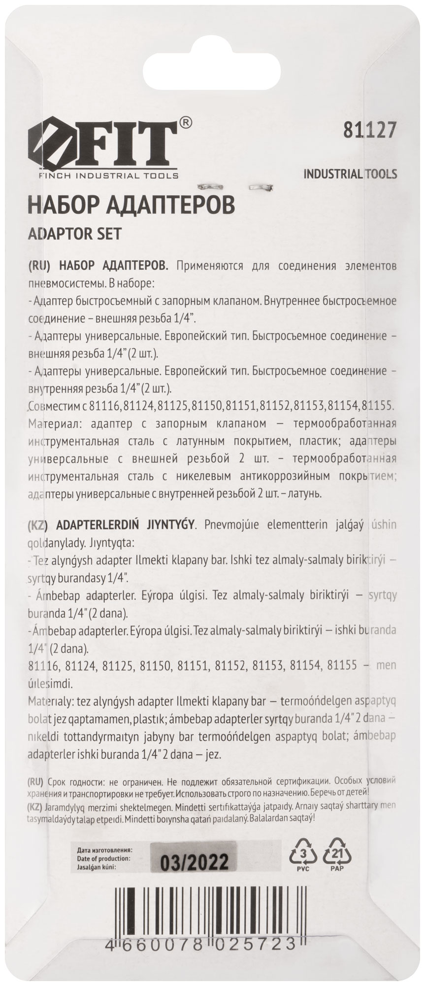 Выберите набор адаптеров FIT 81127, чтобы повысить надежность и эффективность вашей работы с пневматическим оборудованием.