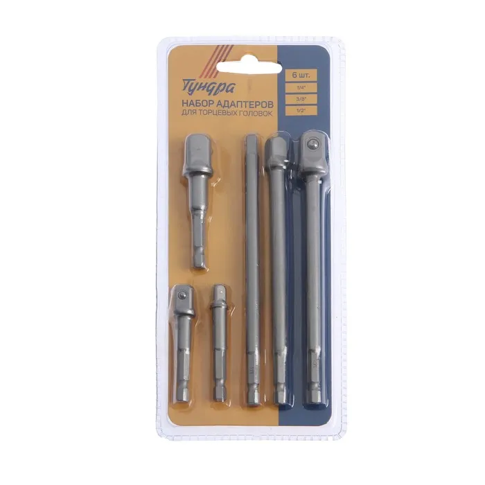 Набор адаптеров для торцевых головок ТУНДРА, под квадрат 1/4" 3/8" 1/2", 65 и 150 мм, 6 шт. — Характеристики