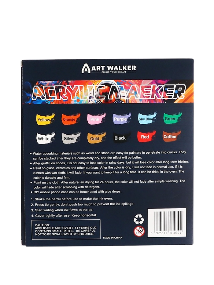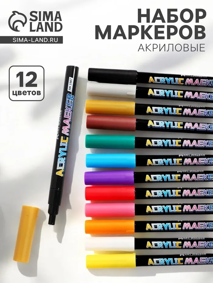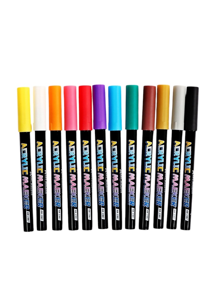 Набор акриловых маркеров 12 цветов, конусный наконечник 0.7 мм, для рисования — Характеристики