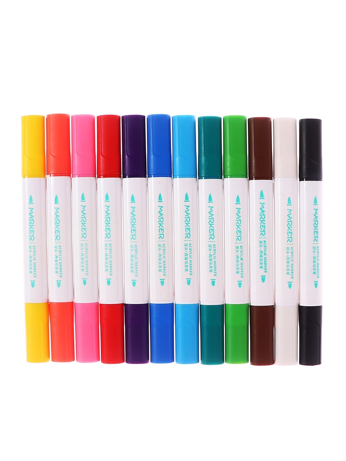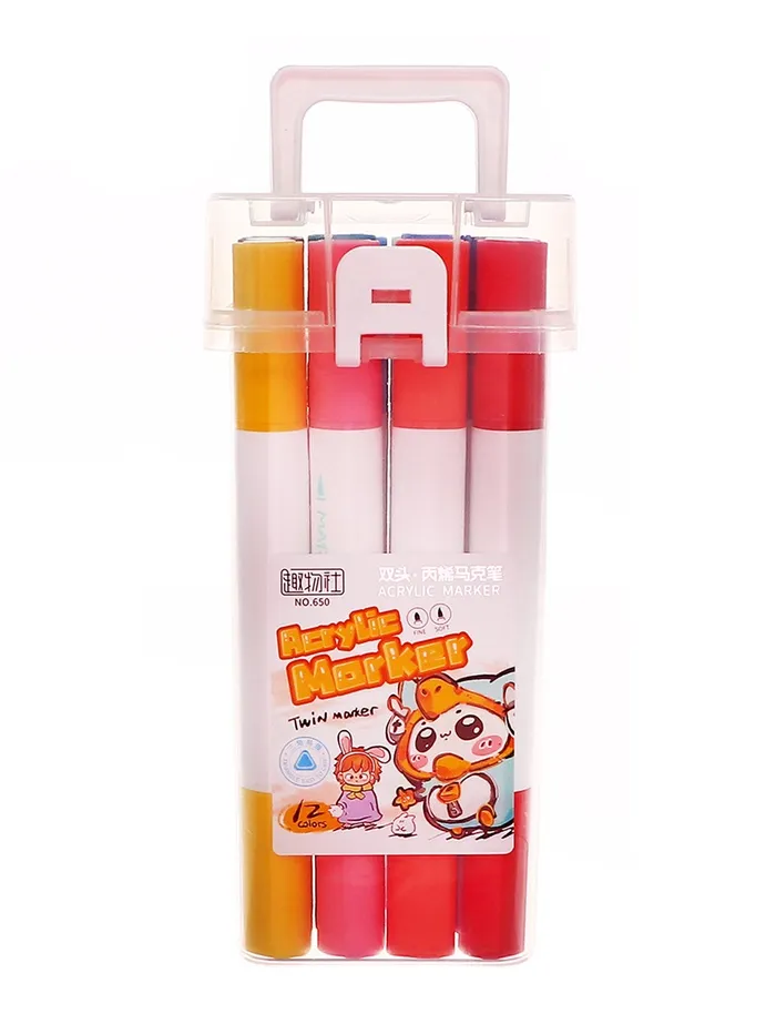 Набор акриловых маркеров, 12 цветов, в пластиковом кейсе, двусторонние — Характеристики