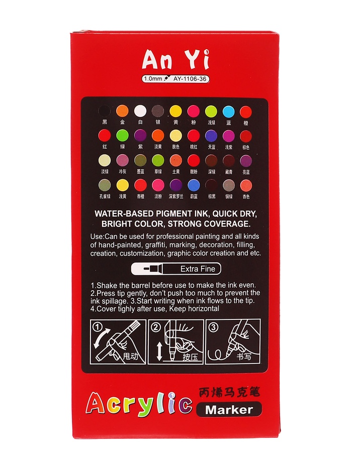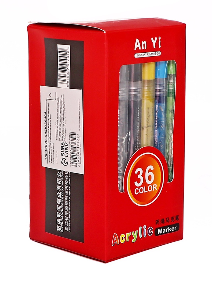 Набор акриловых маркеров 36 штук, пулевидный наконечник 2 мм, толщина линии 1 мм — Характеристики