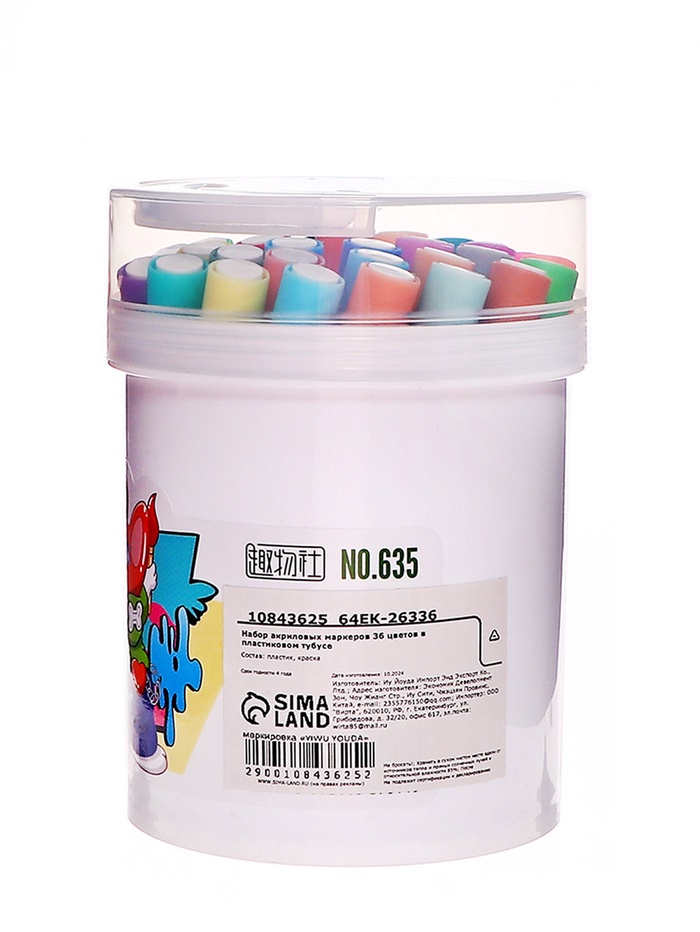 Набор акриловых маркеров, 36 цветов, в пластиковом тубусе — Характеристики