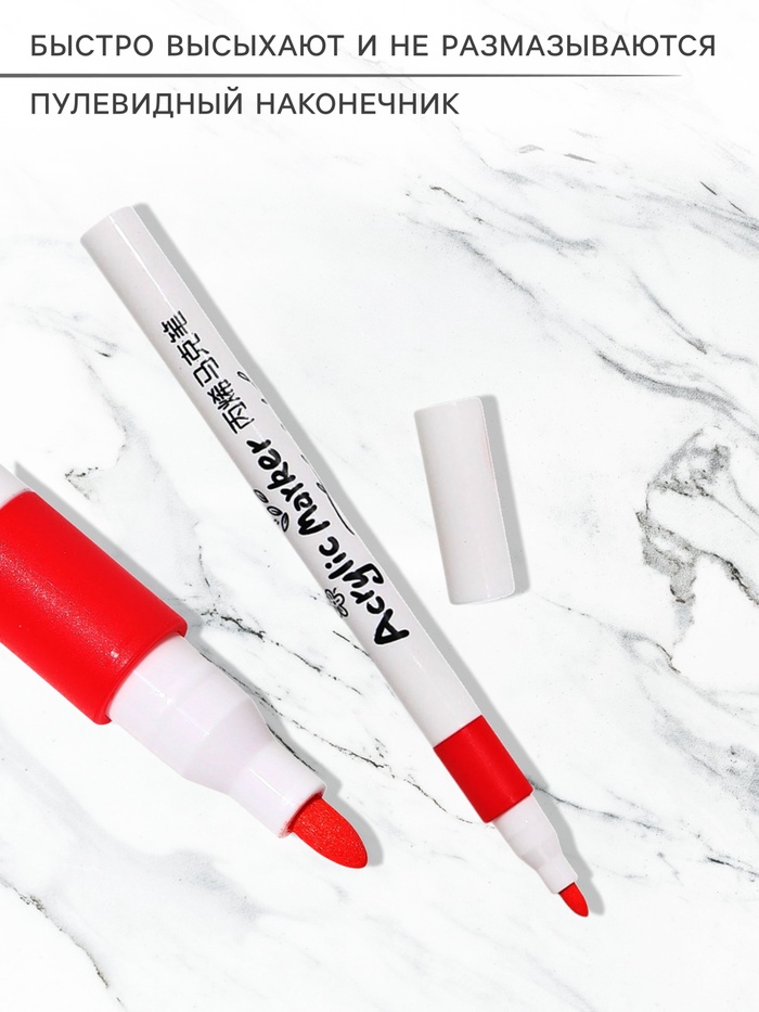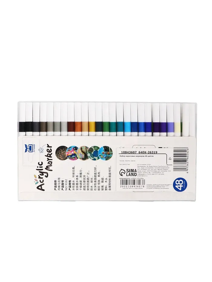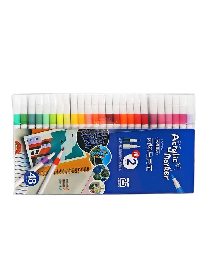 Набор из 48 акриловых маркеров — это богатая палитра для творчества и профессионального рисования. Пулевидный наконечник обеспечивает точность линий, а акриловые чернила подходят для различных поверхностей. Упакованы в удобную пластиковую упаковку.
