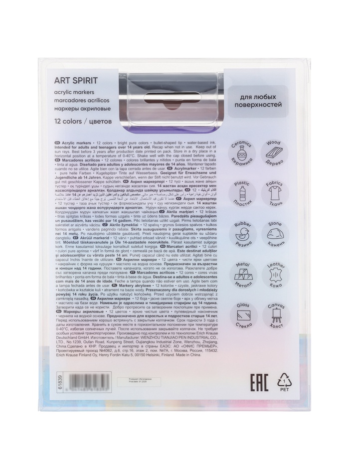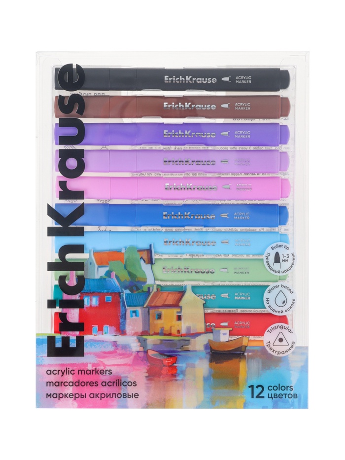 Набор акриловых маркеров ErichKrause. Art Spirit, 12 цветов, c пулевидным наконечником, МИКС — Характеристики