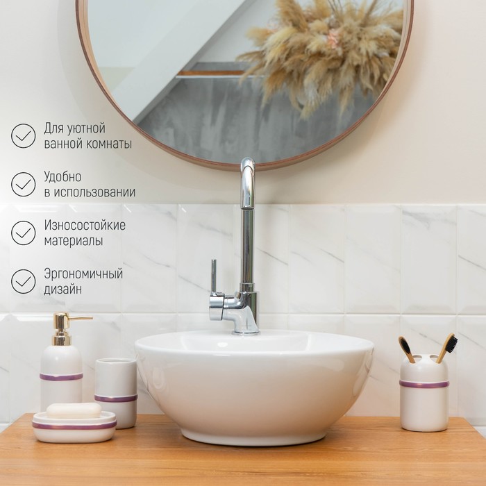 Набор аксессуаров для ванной комнаты «Бурлеск», 4 предмета (мыльница, дозатор для мыла 400 мл, 2 стакана), цвет белый — Характеристики