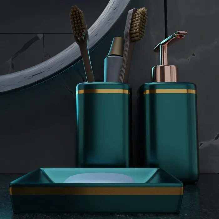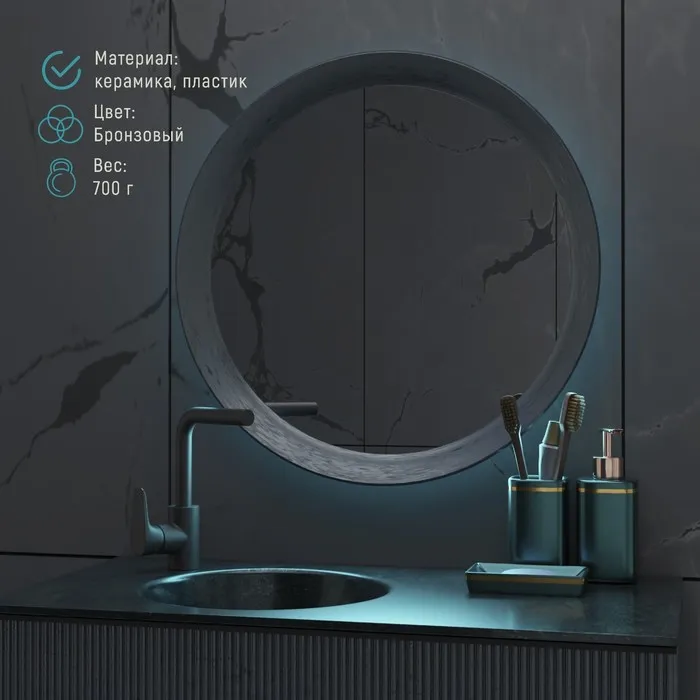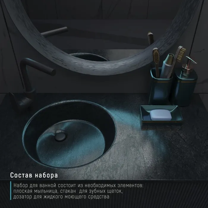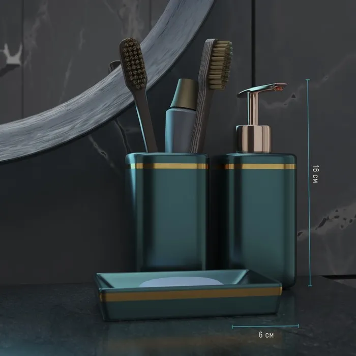 Набор аксессуаров для ванной комнаты Доляна «Богемия», 3 предмета, мыльница, дозатор, стакан, тёмно-зелёный — Характеристики