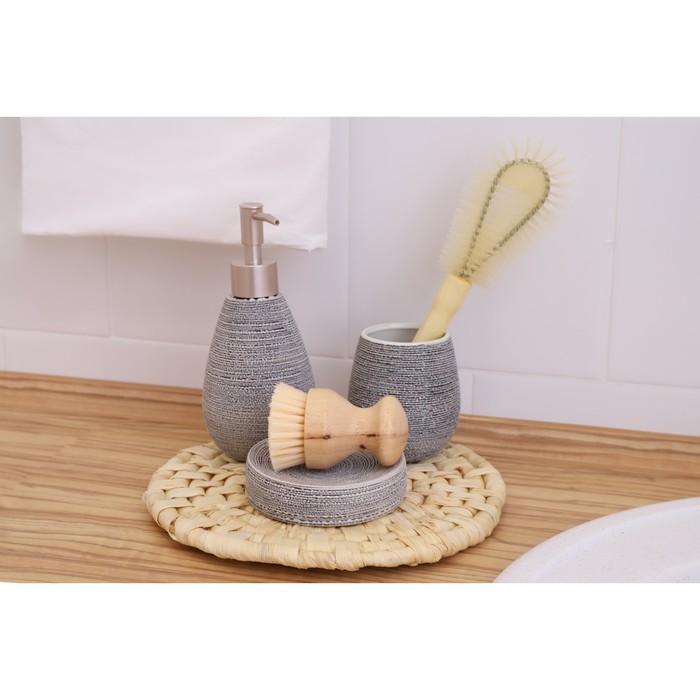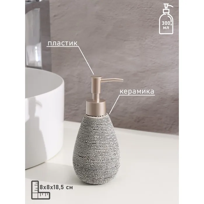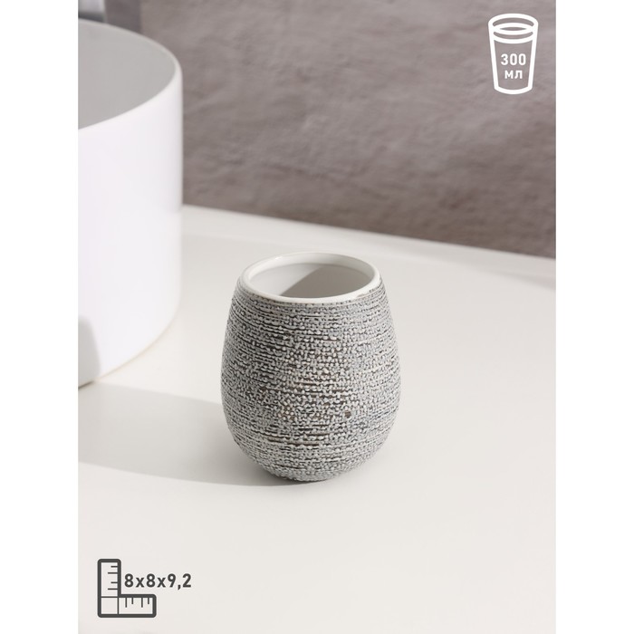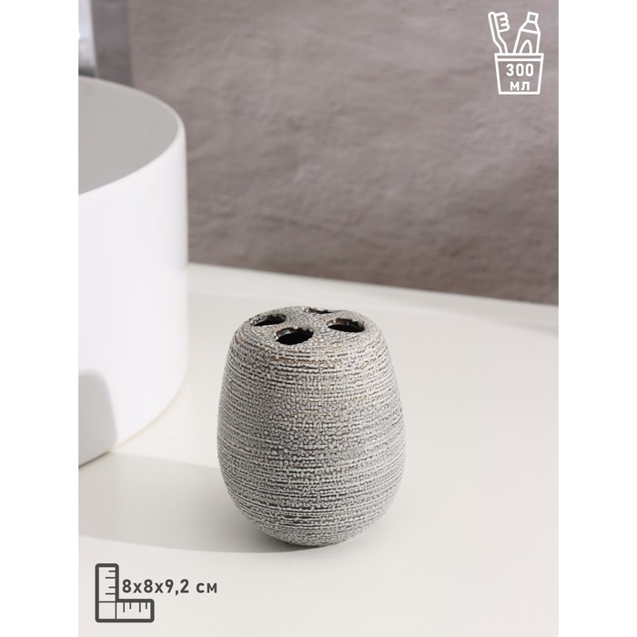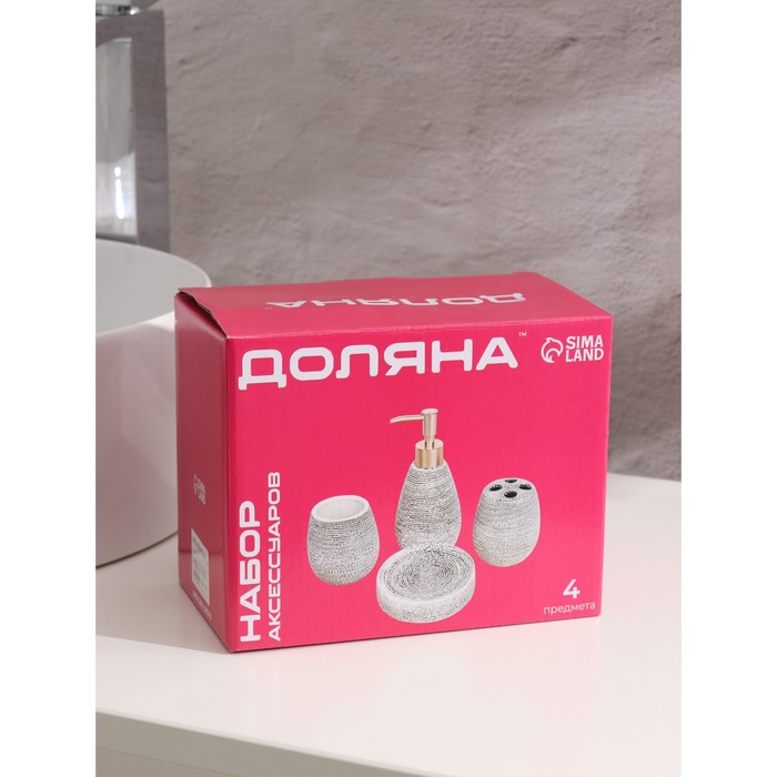 Набор аксессуаров для ванной комнаты Доляна «Камень», 4 предмета (дозатор 300 мл, мыльница, 2 стакана), цвет серый — Характеристики