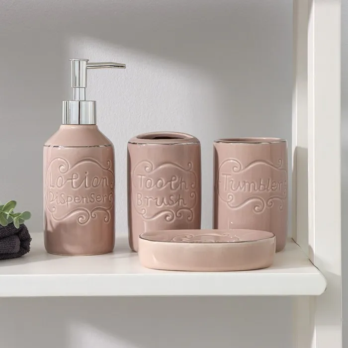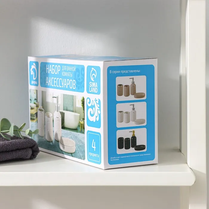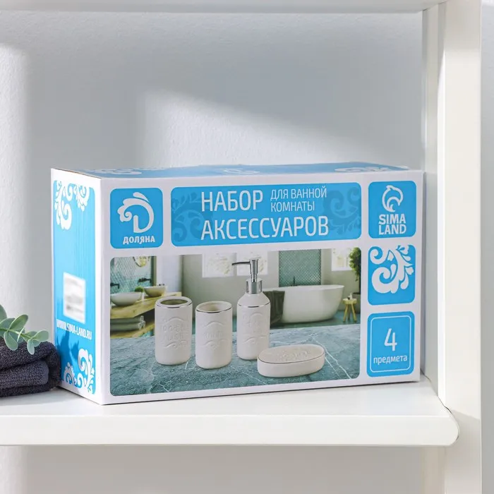 Набор аксессуаров организует пространство и станет стильным украшением Вашей ванной комнаты. За счет сдержанного дизайна данный керамический набор в ванную подойдет к любому дизайну ванной комнаты. Набор состоит из 4 предметов: 2 стакана, мыльница, дозатор.