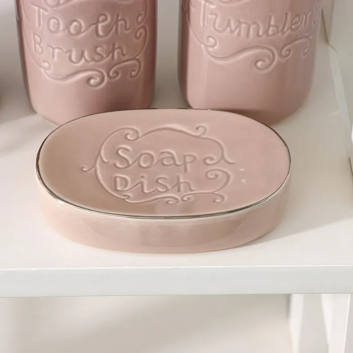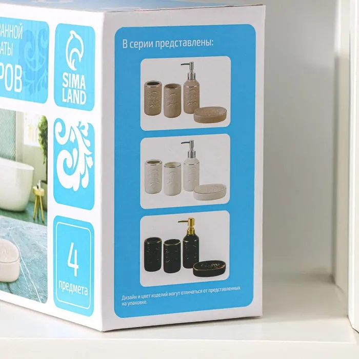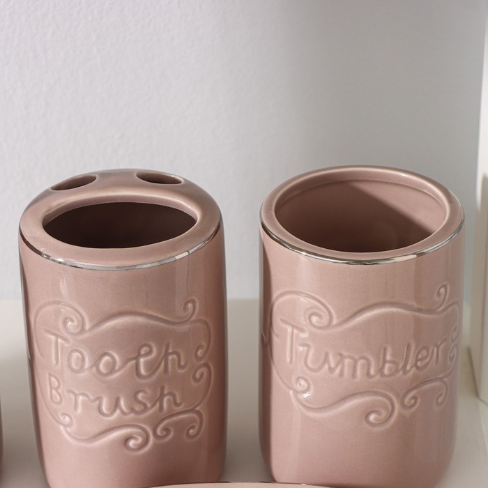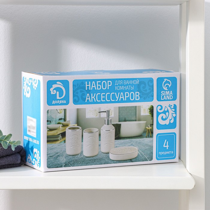 Набор аксессуаров для ванной комнаты Доляна SOUL, 4 предмета (мыльница, дозатор для мыла 350 мл, 2 стакана), цвет бежевый — Характеристики