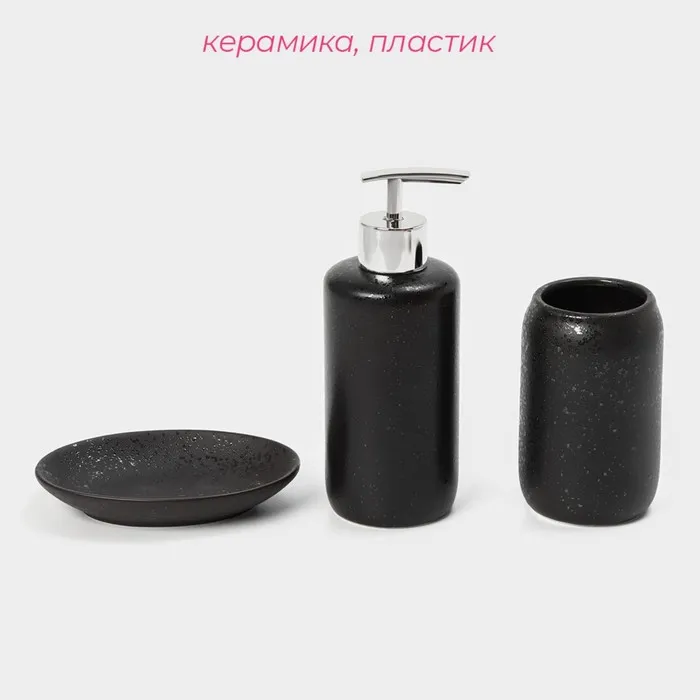 Набор аксессуаров для ванной комнаты Доляна «Венера», 3 предмета, дозатор 350 мл, мыльница, стакан, чёрный — Характеристики