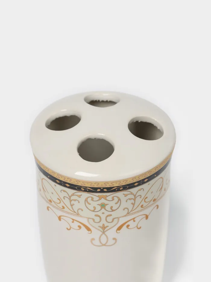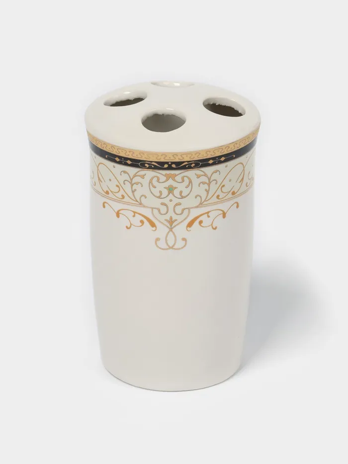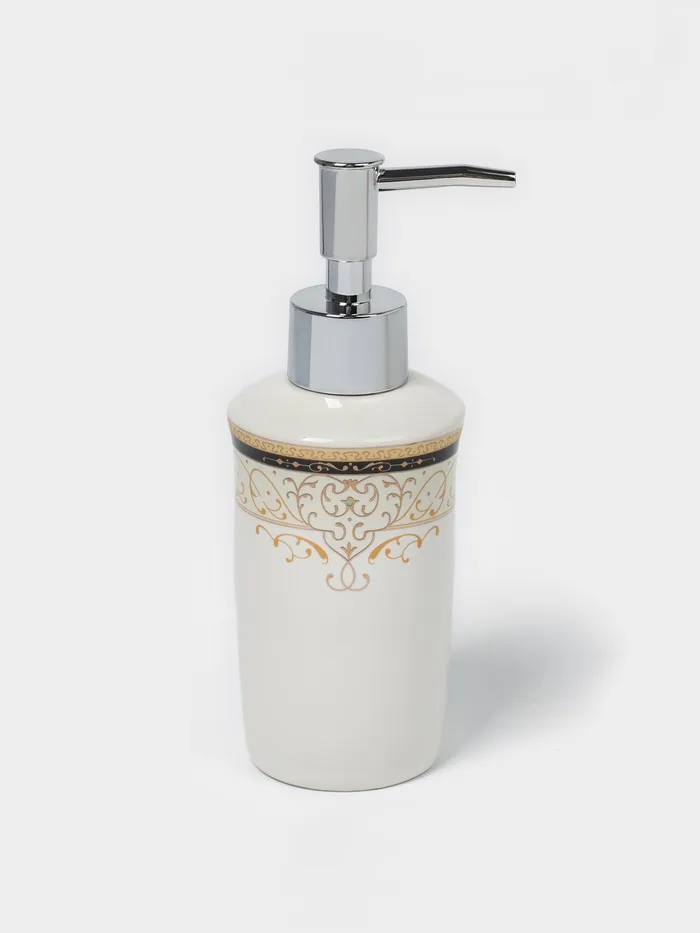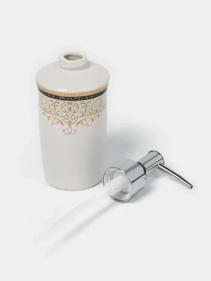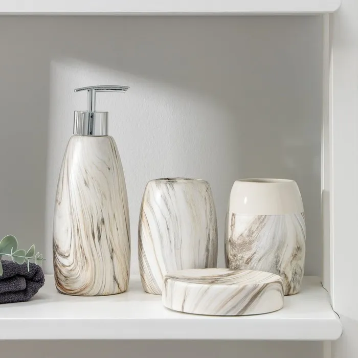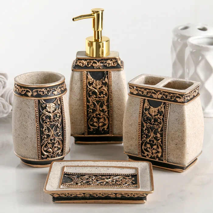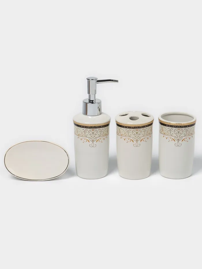 Набор аксессуаров для ванной комнаты Доляна «Золотая роскошь», 4 предмета, дозатор 250 мл, мыльница, 2 стакана, белый — Характеристики