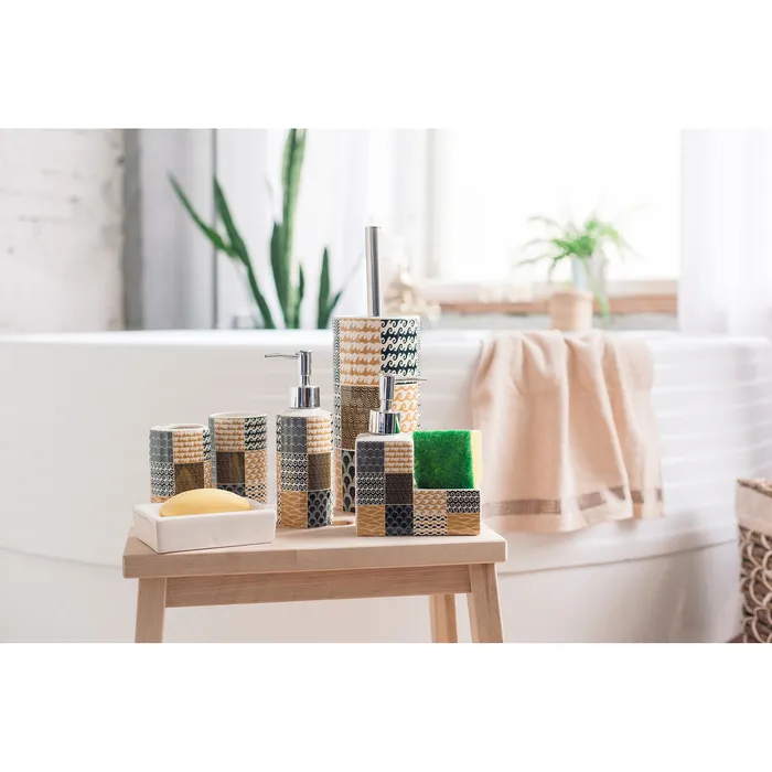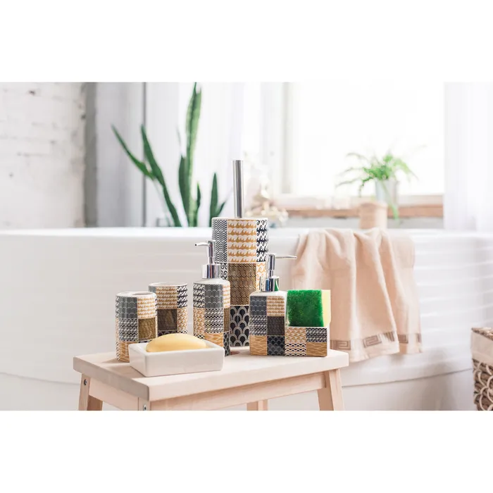 Набор аксессуаров для ванной комнаты «Геометрия», 6 предметов (мыльница, 2 дозатора для мыла, 2 стакана, ёрш) — Характеристики