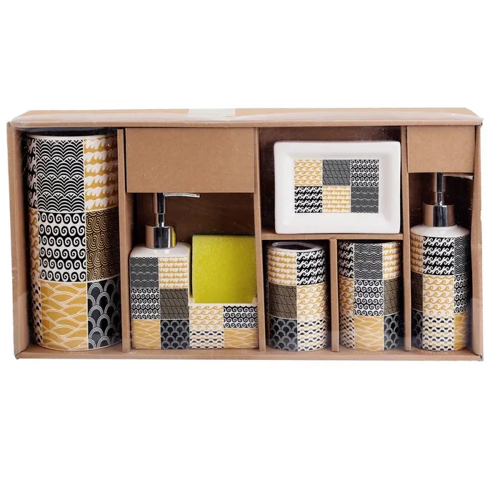 Набор аксессуаров организует пространство и станет стильным украшением Вашей ванной комнаты. За счет сдержанного дизайна данный набор в ванную подойдет к любому дизайну ванной комнаты. Набор состоит из шести предметов.