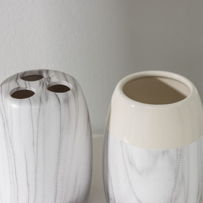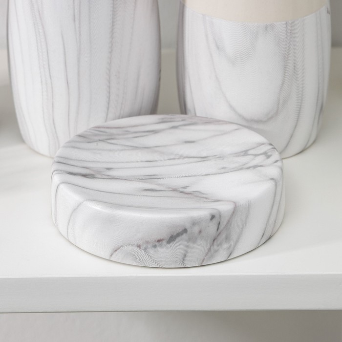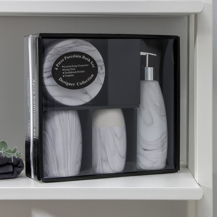Набор аксессуаров для ванной комнаты «Мрамор», 4 предмета (дозатор 400 мл, мыльница, 2 стакана), цвет белый — Характеристики
