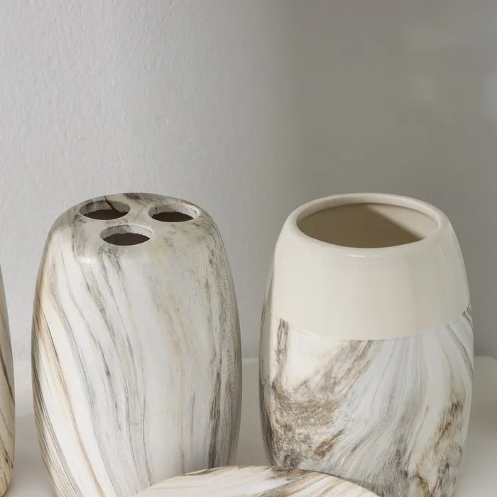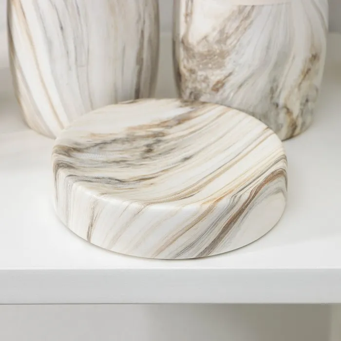 Набор аксессуаров для ванной комнаты «Мрамор», 4 предмета, дозатор 450 мл, мыльница, 2 стакана, бежевый — Характеристики