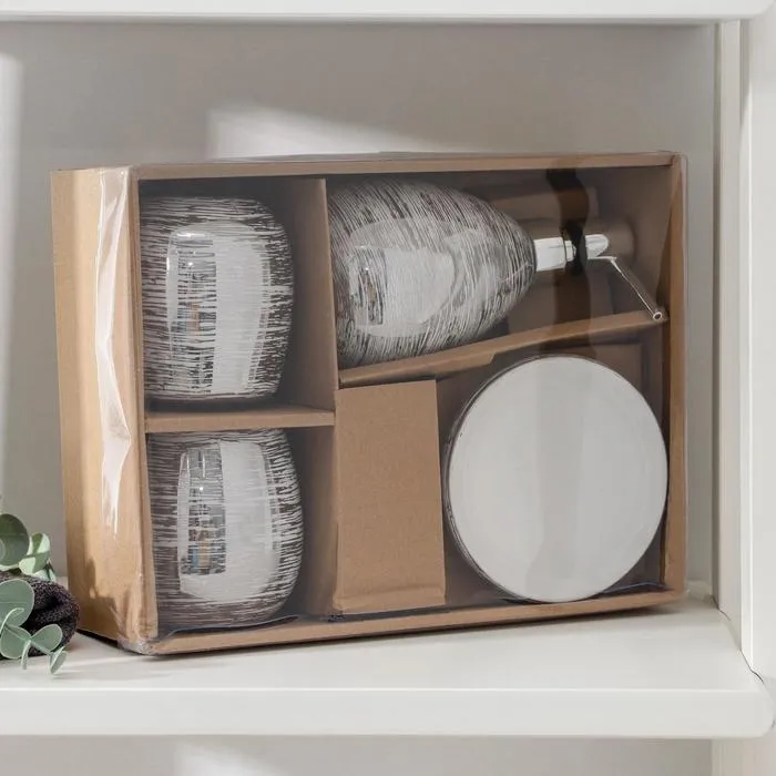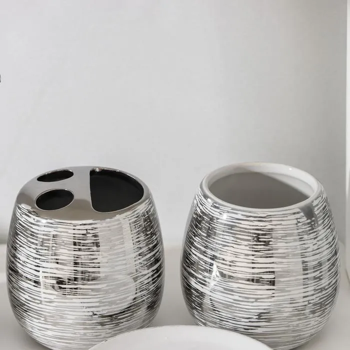 Набор аксессуаров для ванной комнаты «Нити», 4 предмета, мыльница, дозатор 400 мл, 2 стакана, серебряный — Характеристики