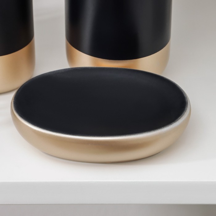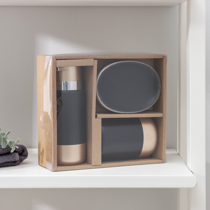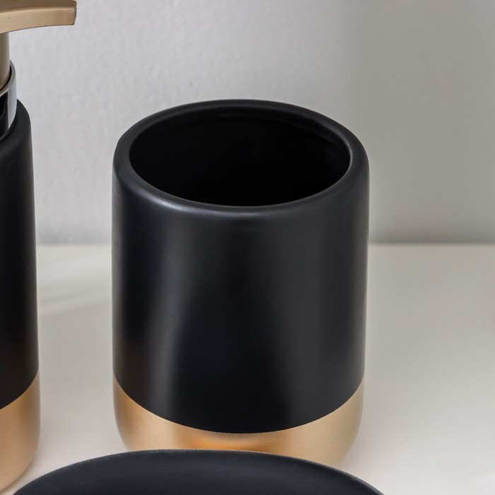 Набор аксессуаров для ванной комнаты «Руж», 3 предмета, дозатор для мыла 290 мл, мыльница, стакан 300 мл, чёрный — Характеристики