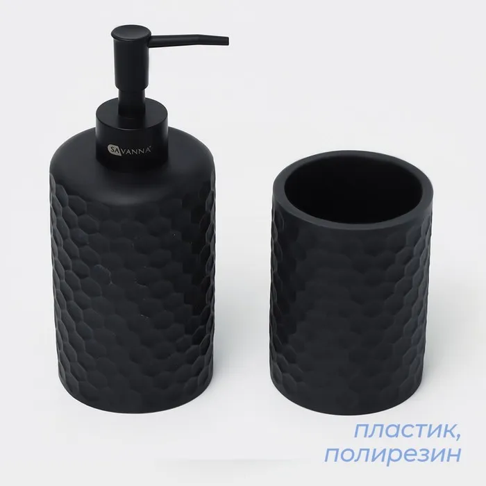 Набор аксессуаров для ванной комнаты SAVANNA состоит из двух предметов: дозатора и стакана.