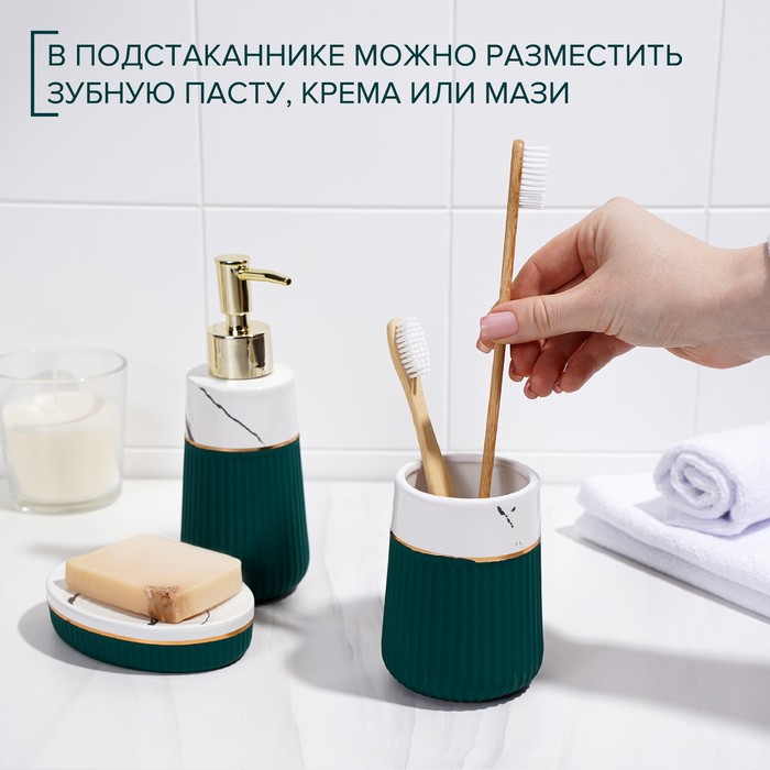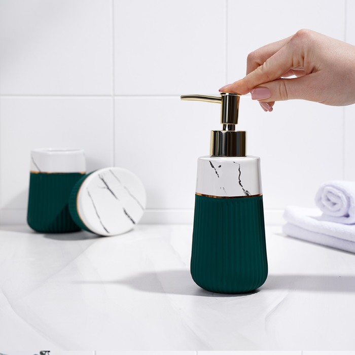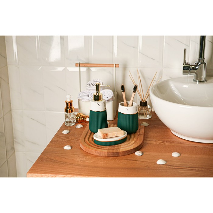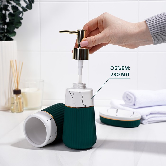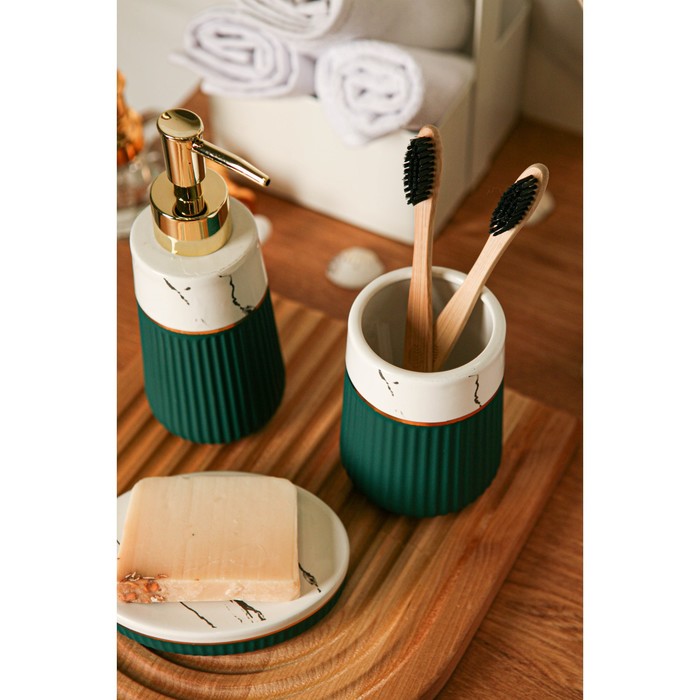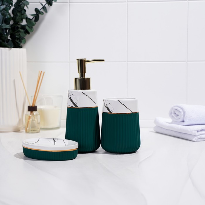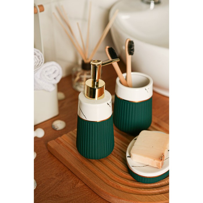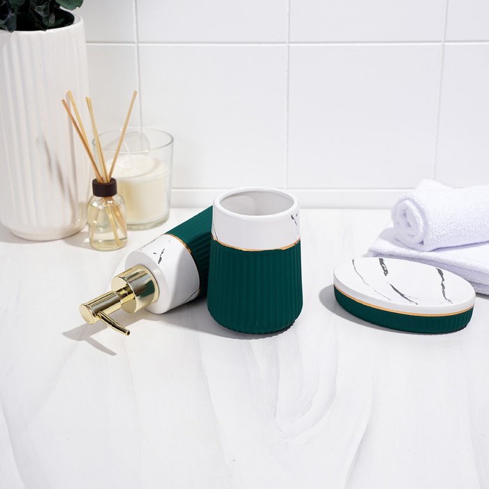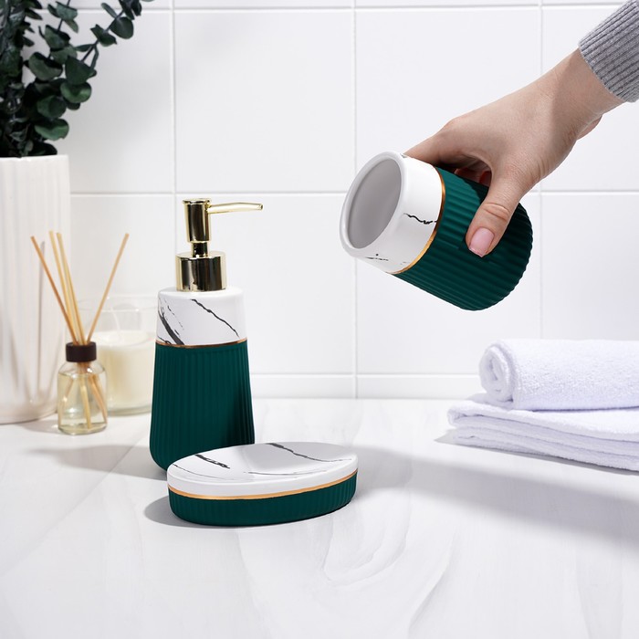 Набор аксессуаров для ванной комнаты SAVANNA Grace, 3 предмета (дозатор для мыла 290 мл, стакан, мыльница), цвет зелёный мрамор — Характеристики