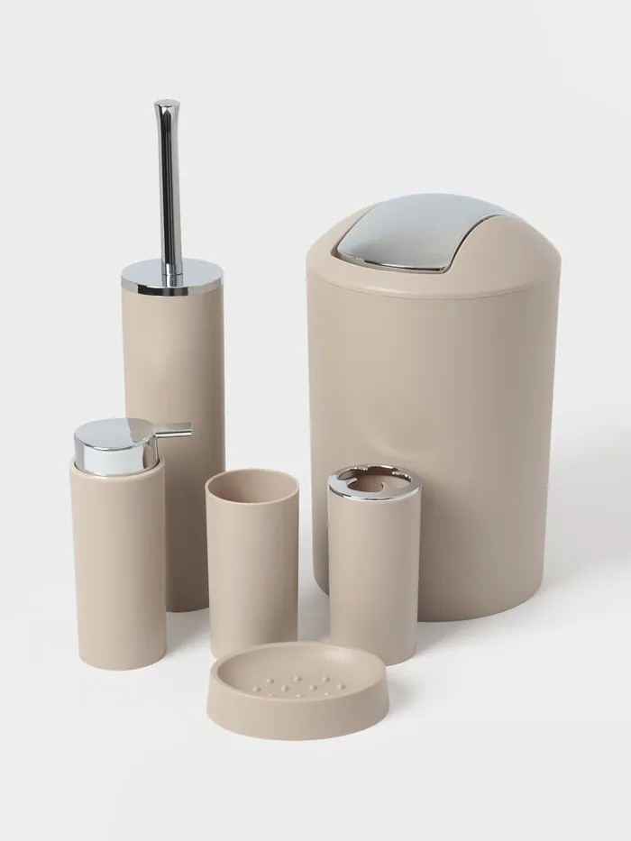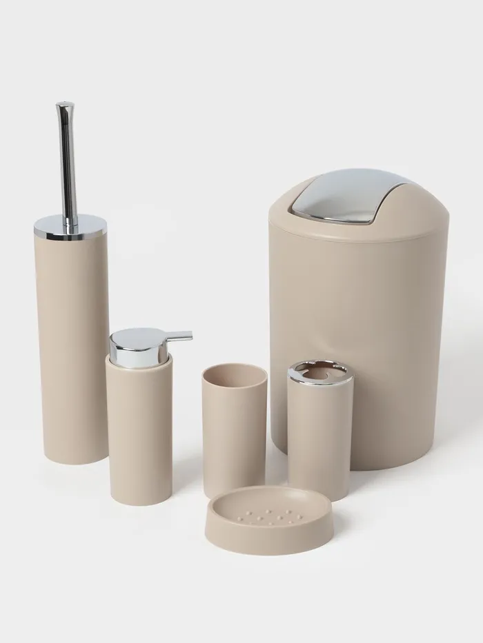 Набор аксессуаров организует пространство и станет стильным украшением Вашей ванной комнаты. За счет сдержанного дизайна данный набор в ванную подойдет к любому дизайну ванной комнаты. Набор состоит из 6 предметов.