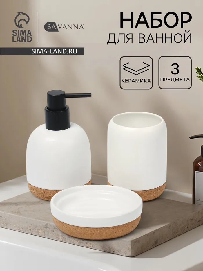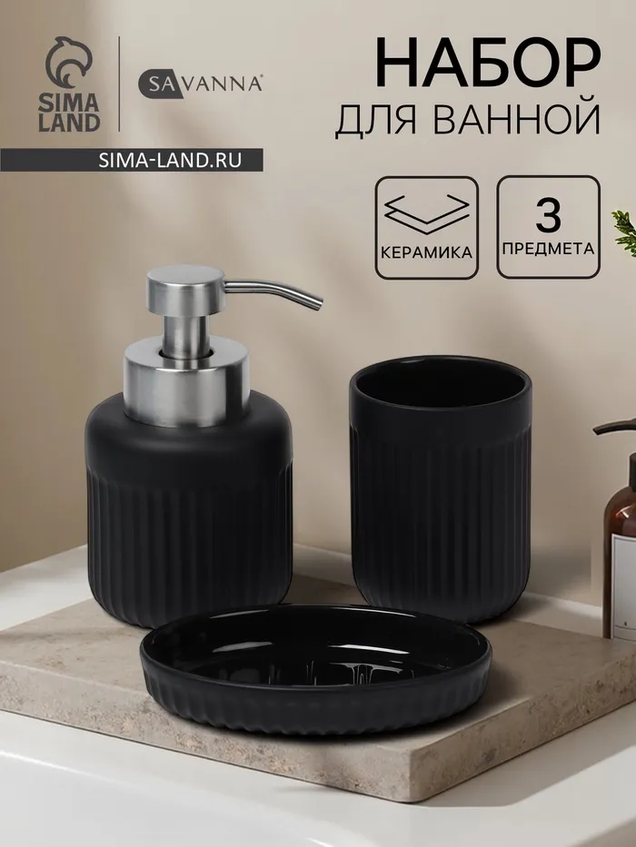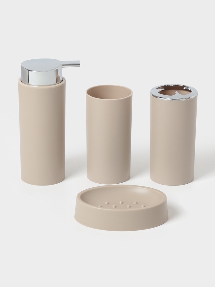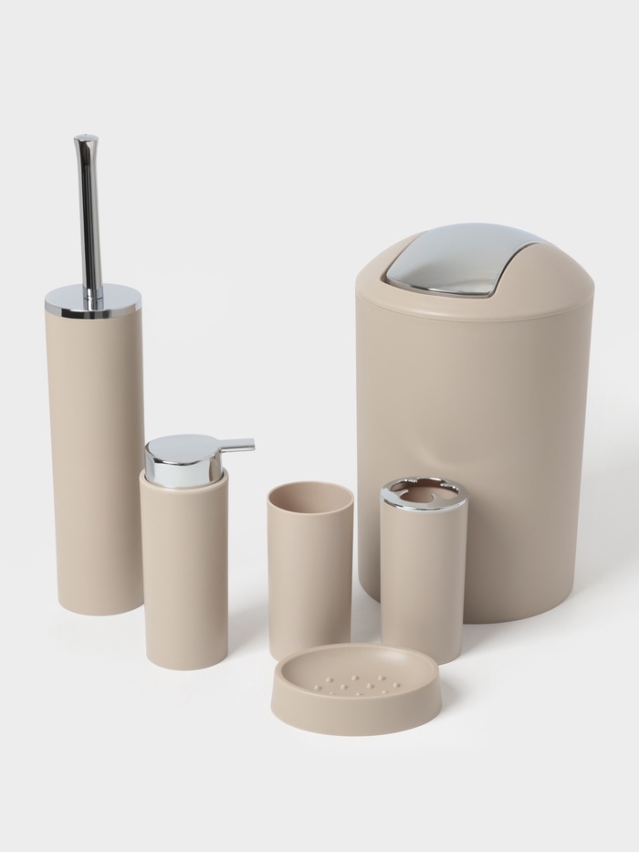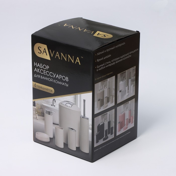 Набор аксессуаров для ванной комнаты SAVANNA «Сильва», 6 предметов (дозатор, мыльница, 2 стакана, ёршик, ведро), цвет серый — Характеристики