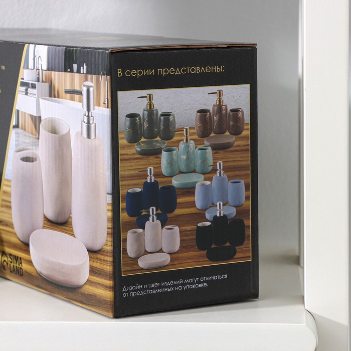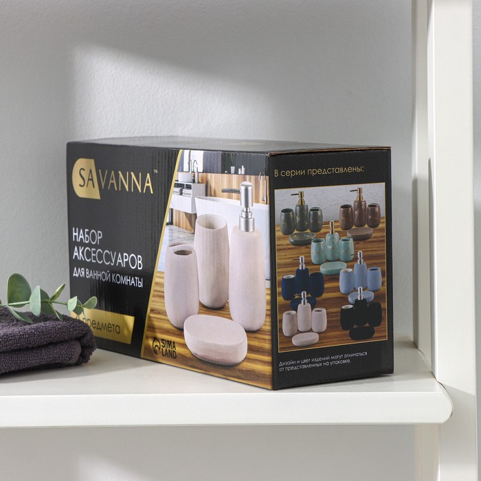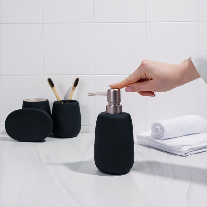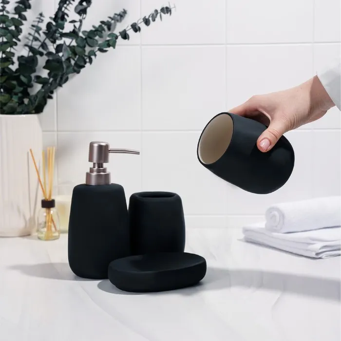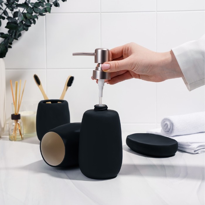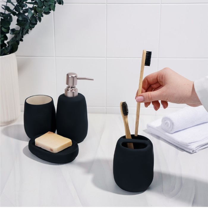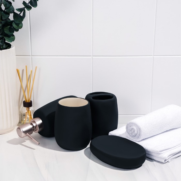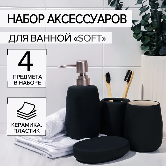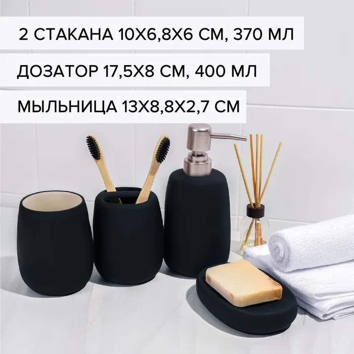 Набор аксессуаров для ванной комнаты SAVANNA Soft, 4 предмета (мыльница, дозатор для мыла 400 мл, 2 стакана), цвет чёрный — Характеристики