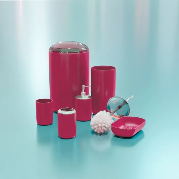 Набор аксессуаров для ванной комнаты «Тринити», 6 предметов, мыльница, дозатор для мыла, два стакана, ёрш, ведро, розовый