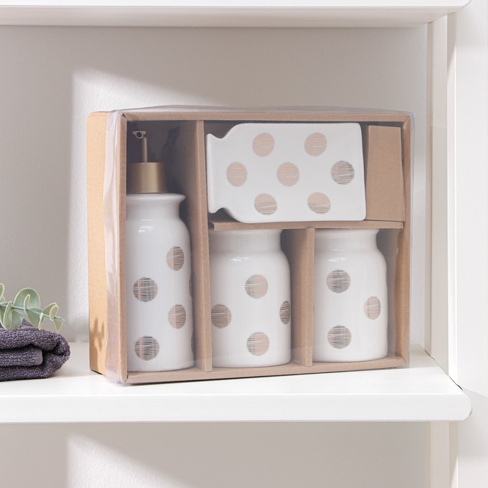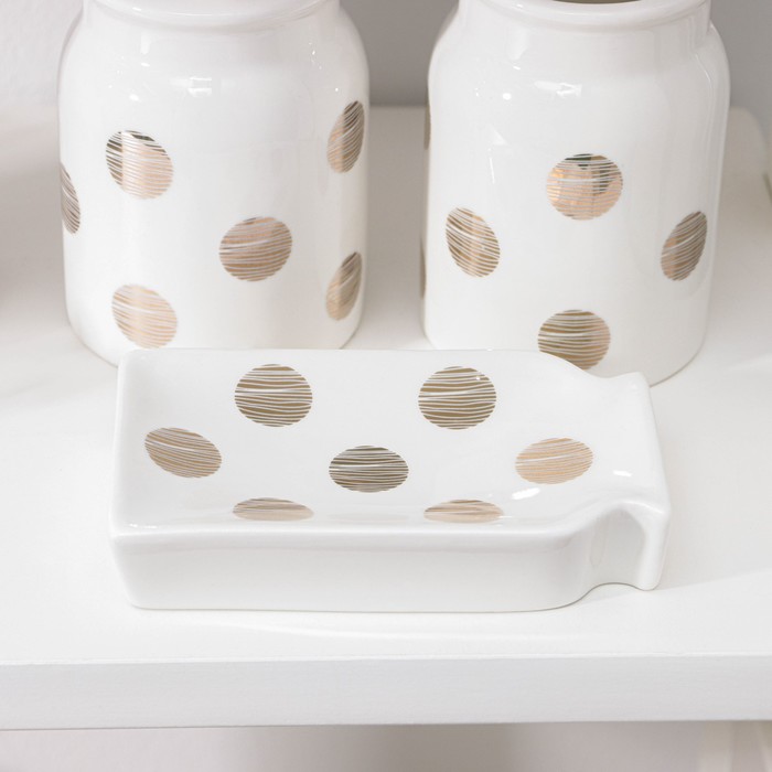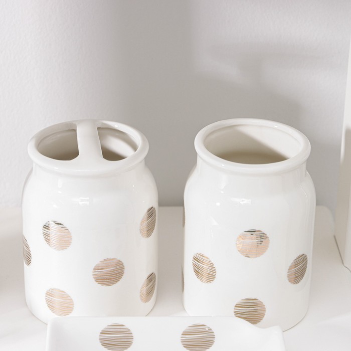 Набор аксессуаров для ванной комнаты «Золото», 4 предмета (дозатор 350 мл, мыльница, 2 стакана), цвет белый — Характеристики